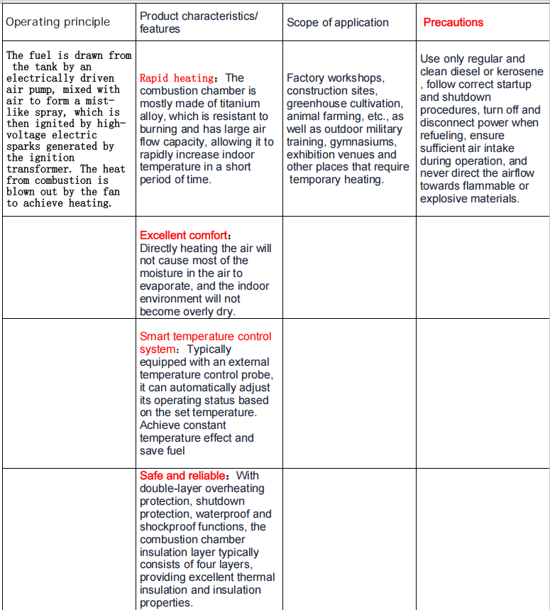 Fuel-fired heater is a heating equipment that generates hot air using diesel or kerosene as fuel, widely used in industrial, agricultural, and outdoor scenarios.