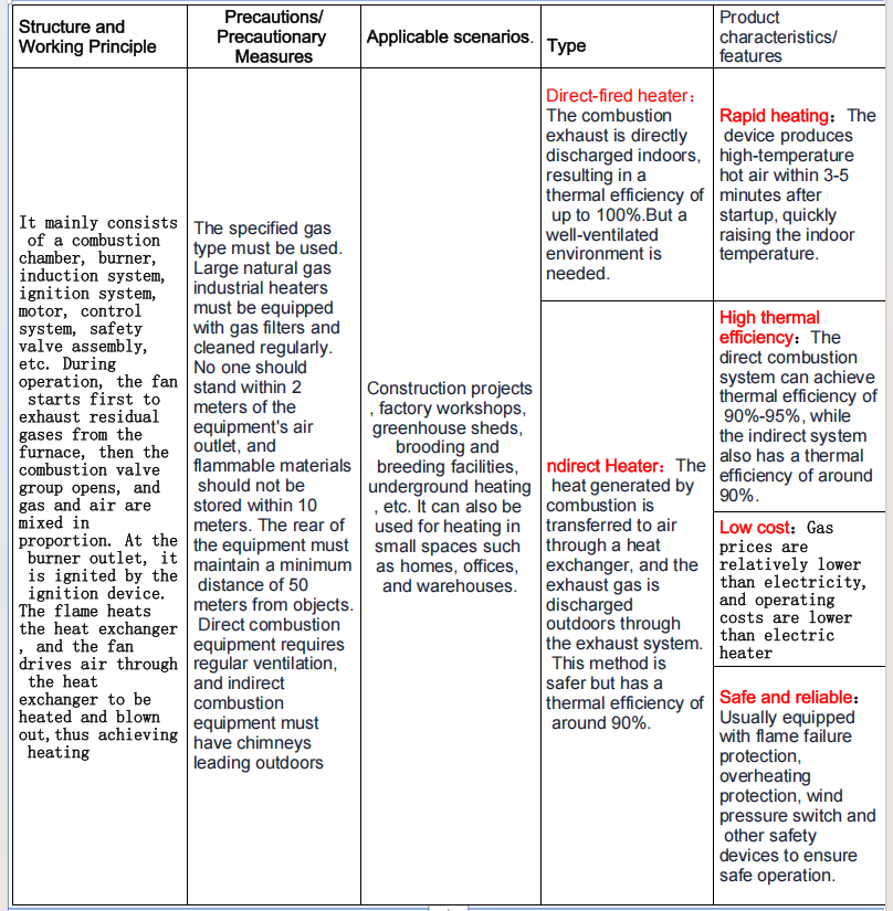 A gas heater is a heating device that uses natural gas, liquefied petroleum gas, etc. as fuel. It generates heat through combustion, and then the fan blows out the heat to achieve heating.