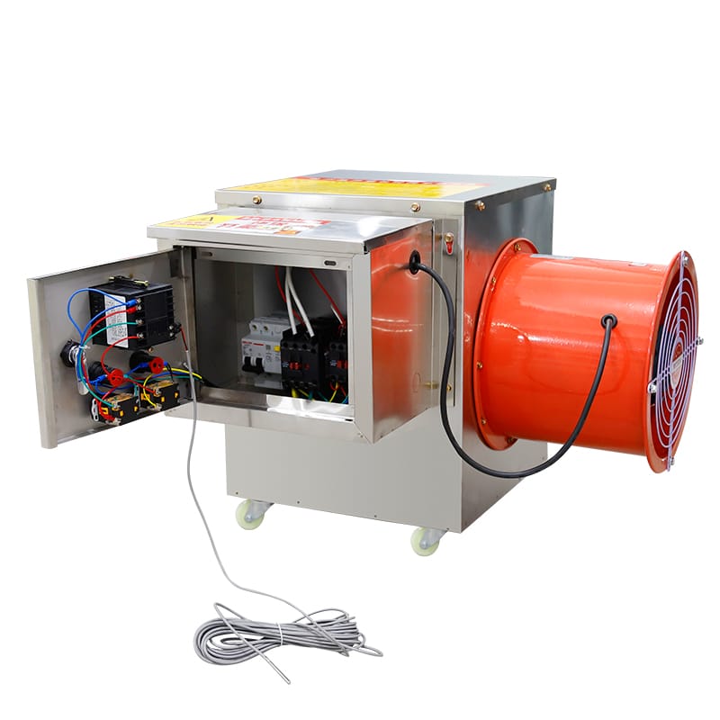 - The stainless steel electric heating tube with built-in fins enhances heat dissipation, increasing the heating area and rapidly raising temperatures. This design ensures quick and efficient heating for large industrial spaces.